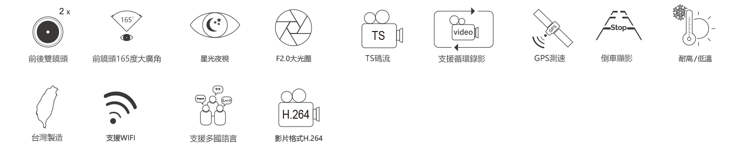 鏡頭廣角前鏡頭:165度/後鏡頭:165度 大廣角