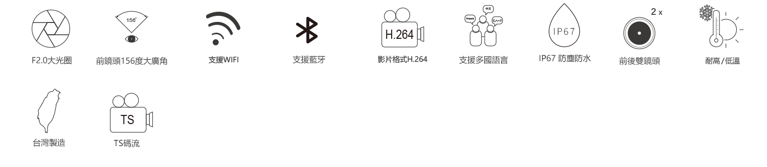 Global Eagle X5行車記錄器是以經濟實惠為出發點,推出的最強入門款機型,除了配置了高清的前後鏡頭外,3吋IPS螢幕主機也是一大特色,方便車主隨時透過畫面來讀取行車資訊。 前後鏡頭不僅採用了國際認證的IP67防塵防水,再結合了高達156°的超大廣角,讓車輛行進時的拍攝視野更為廣闊,讓安全性達到進一步的提升;為獲得絕佳拍攝的畫面呈現,皆採用FHD 1080P的影像解析度,配合F/2.0的光圈配置,對於車輛行進間的前後畫面,都能清晰保存在TS碼流的影片格式內。